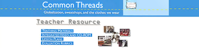 The Common Threads project, Globalization, Sweatshops, and the Clothes We Wear, is designed as a study tool for students interested in the relationship between major clothing brands and the people and places where they are produced.